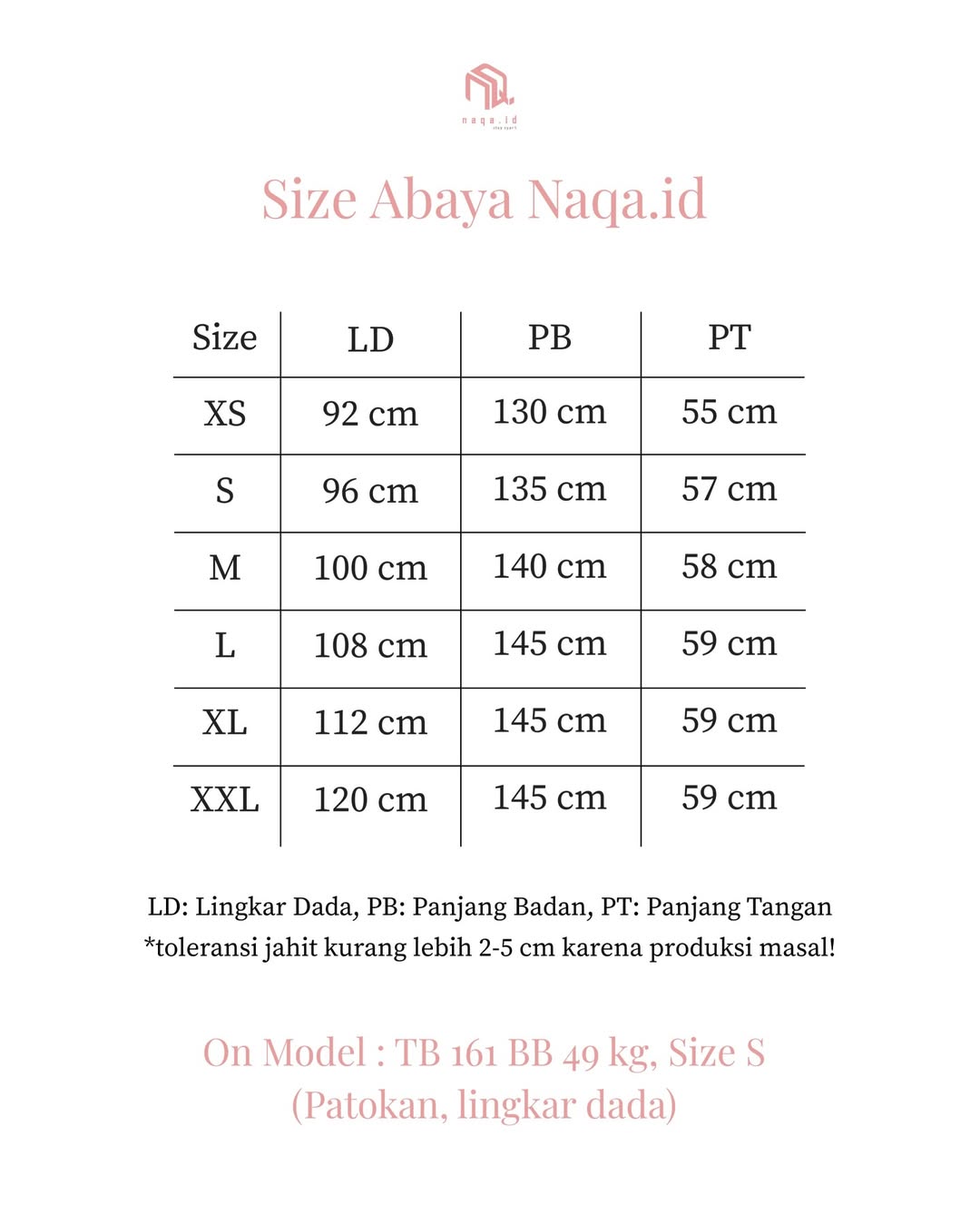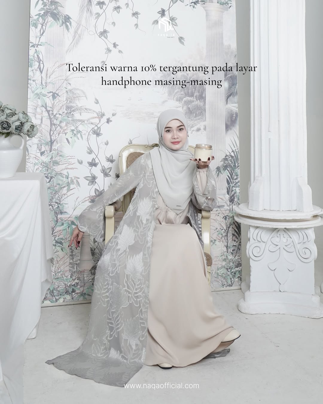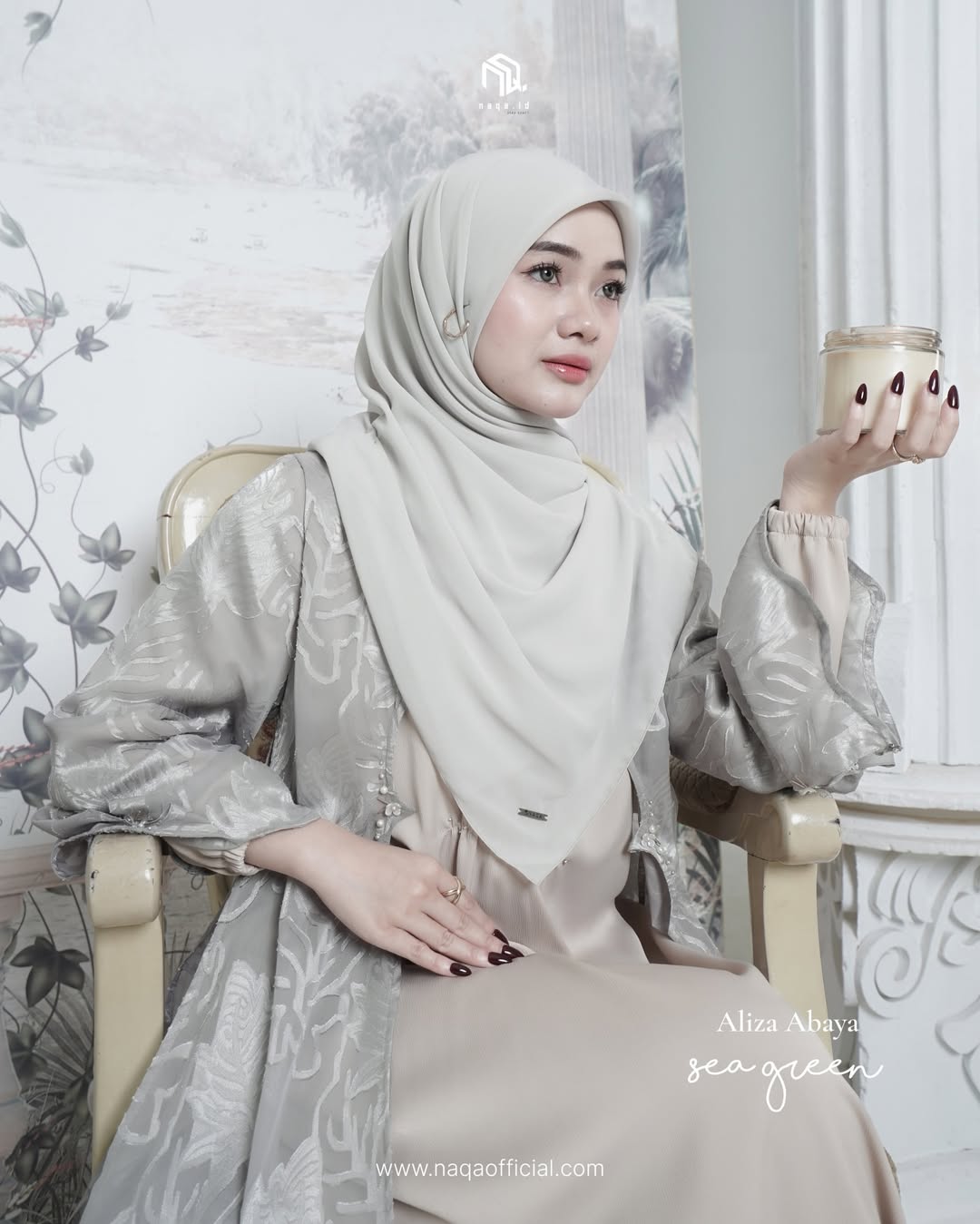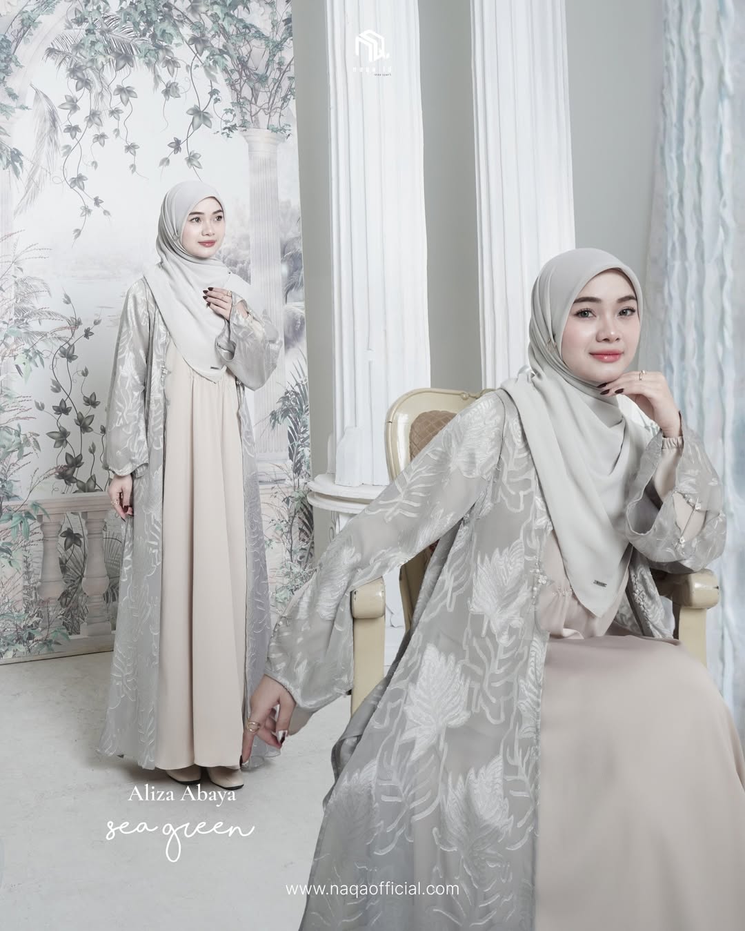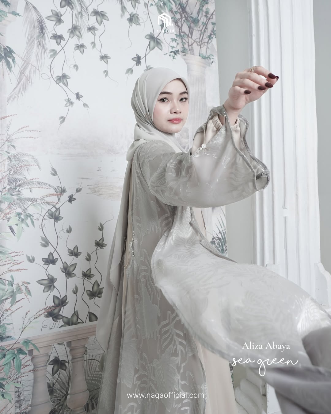 Aliza Abaya dirancang menggunakan material lembut dengan jatuh yang sempurna, dipadukan lapisan outer flowy untuk menghadirkan tampilan yang anggun, rapi, dan berkelas.