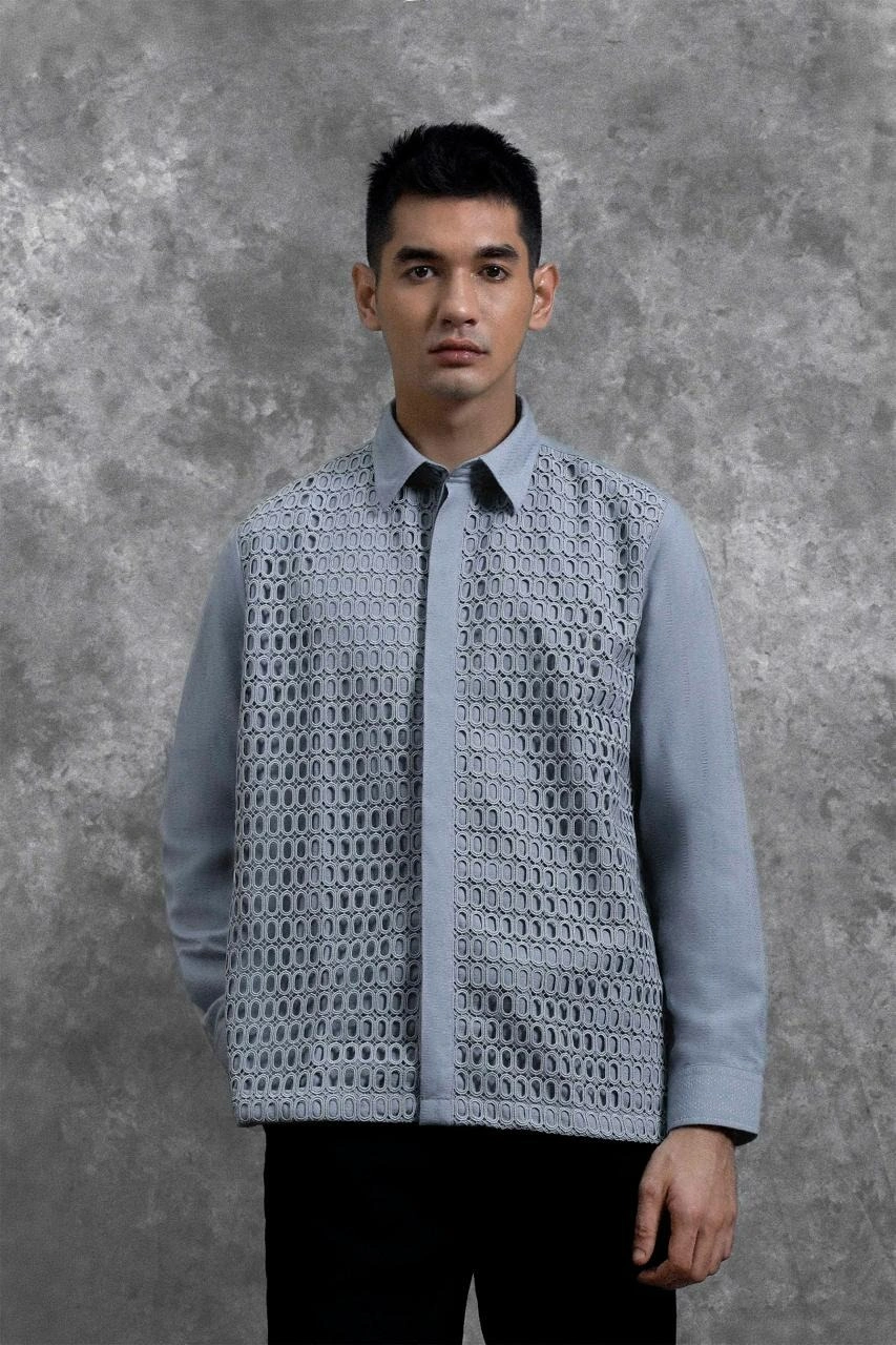 Kemeja ini hadir dengan potongan Regular Formal Fit . Menghadirkan perpaduan unik panel Lace Embroidery berdesain shape oval yang tersusun presisi pada bagian badan depan. Penggunaan Hidden Button menciptakan tampilan depan yang seamless dan minimalis, memberikan ruang bagi detail brukat untuk tampil sebagai centerpiece yang mewah. Dengan lengan panjang bermanset rapi, kemeja ini dirancang khusus bagi yang ingin tampil eksklusif dan berbeda dalam balutan craftsmanship yang modern.