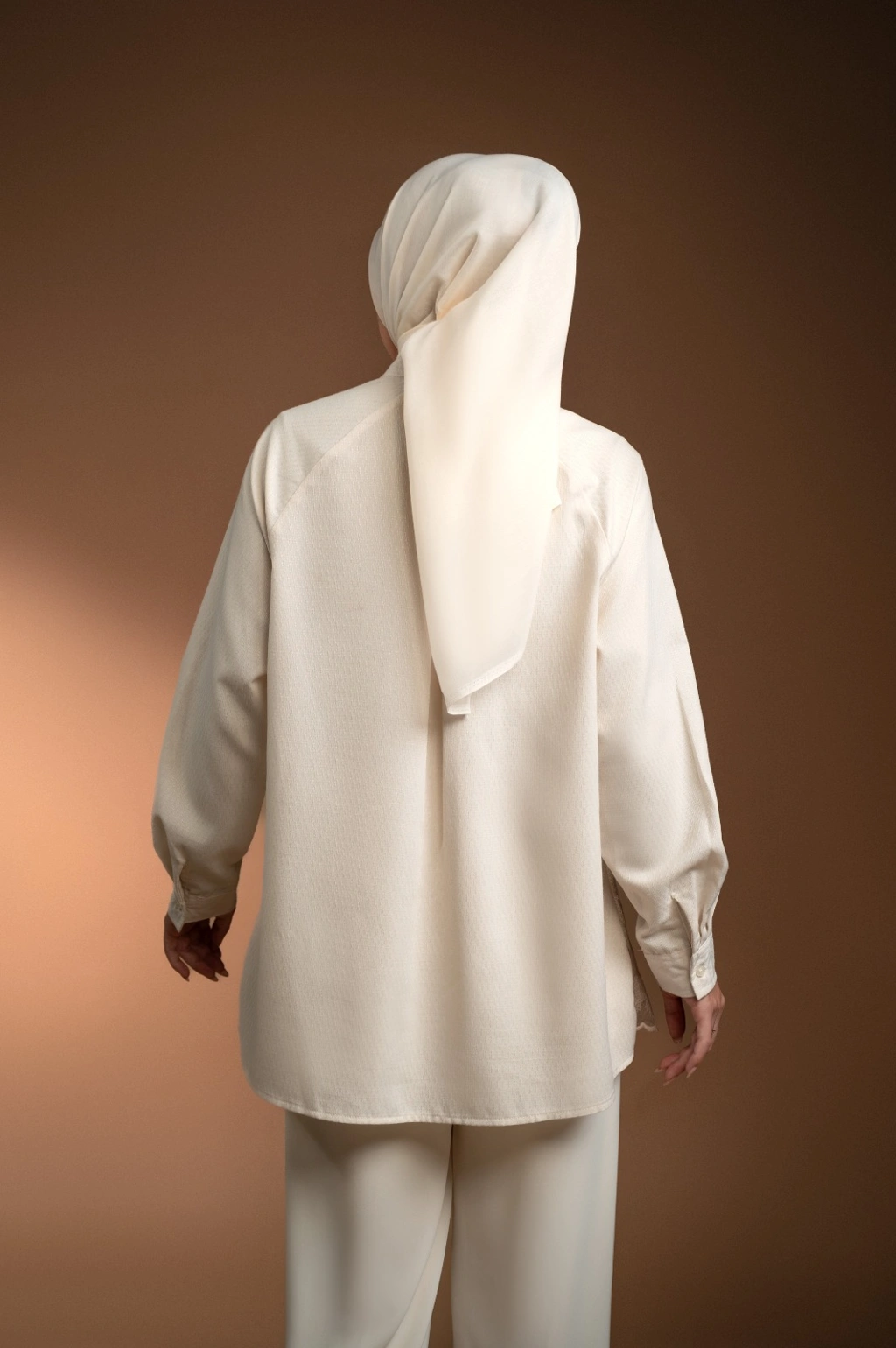 Potongan raglan yang memberikan kesan anggun.