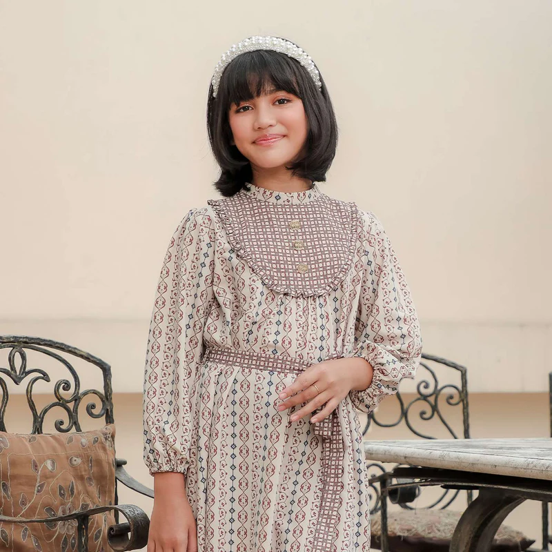 Mawra Dress Kids hadir dengan desain manis dan nyaman untuk si kecil, dilengkapi detail yoke dan ruffle pada bagian depan yang memberi sentuhan lembut dan feminin. Variasi kancing depan menambah aksen menarik, sementara bukaan belakang menggunakan resleting untuk memudahkan pemakaian.