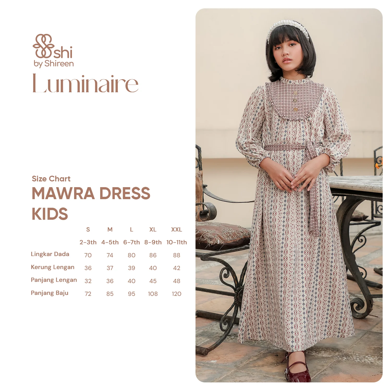 Terbuat dari material Polyester Premium / Barbara Silk yang lembut, licin, dan halus, dengan karakter bahan jatuh, adem, serta mudah menyerap keringat, Mawra Dress Kids cocok dikenakan sepanjang hari. Tersedia dalam warna cream dengan pilihan size S hingga XXL.