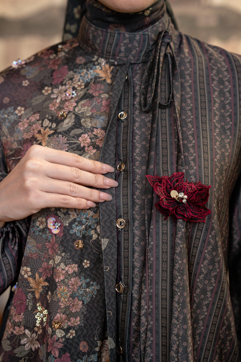 ✅ Ada detail tali unik di bagian kerah dan di lengkapi bunga bordir.