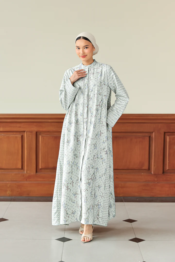 Memberikan kesan yang elegan, dress ini dibuat dari material katun premium yang adem dan nyaman di kulit. Dilengkapi dengan pattern lembut yang feminin serta sentuhan lace, menghadirkan tampilan anggun yang effortless dan cocok dikenakan di hari Raya.